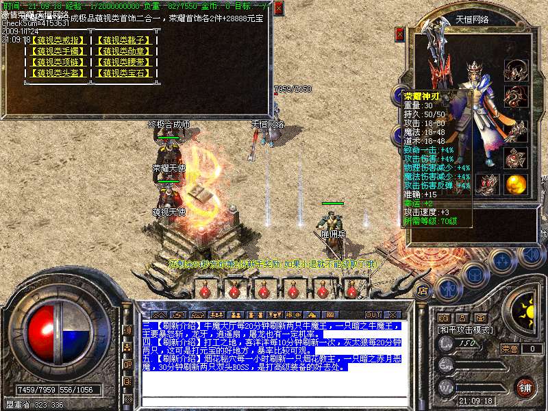 【特色活动】封魔谷皇宫内和土药附近每2小时刷一个老魔,系统每2小时还会在沃玛大厅举行一次大型送宝,可以暴出高级装备!