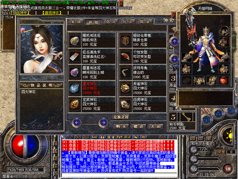 【铁血雄狮任务】服务器的四大神兽任务,只要集齐四个神石即可兑换一头超强大华丽的铁血雄狮座骑,骑上之后游戏速度快人一倍!
