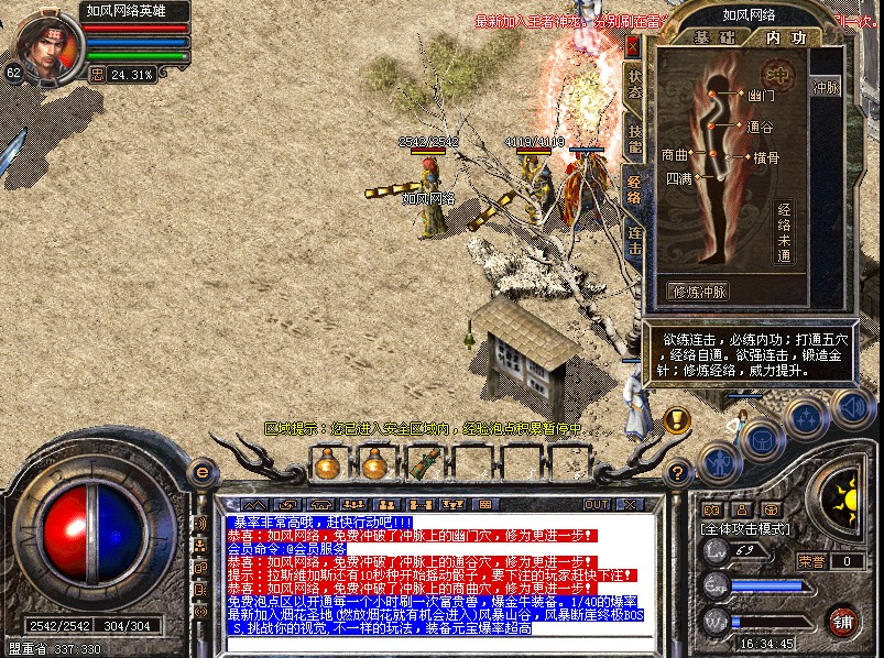 1.新手上线后送基本的装备和少量的元宝,新手可以去土城免费泡经验升级,当然也可以选择挂元宝升级