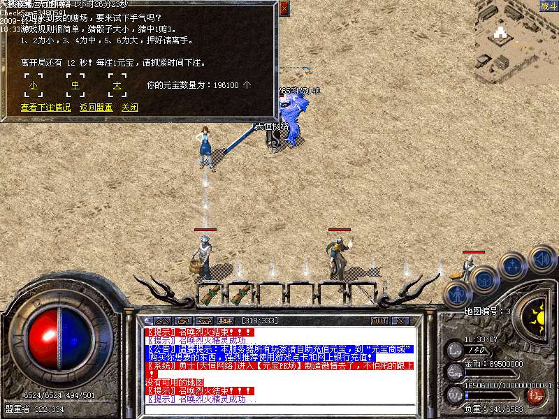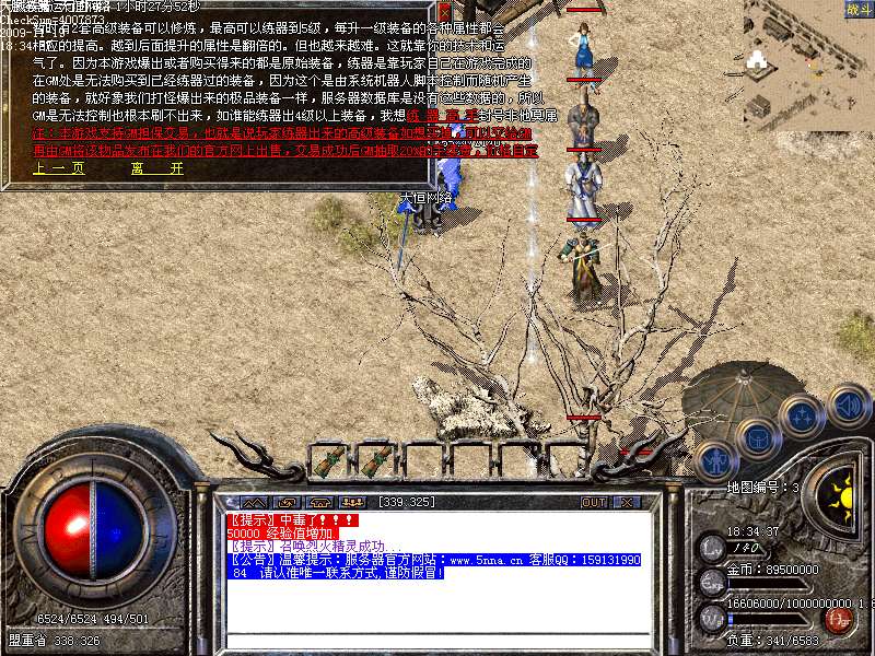 9.在土城 338 341 有个"装备回收员",在那里玩家可以把多余的高级装备兑换成元宝.