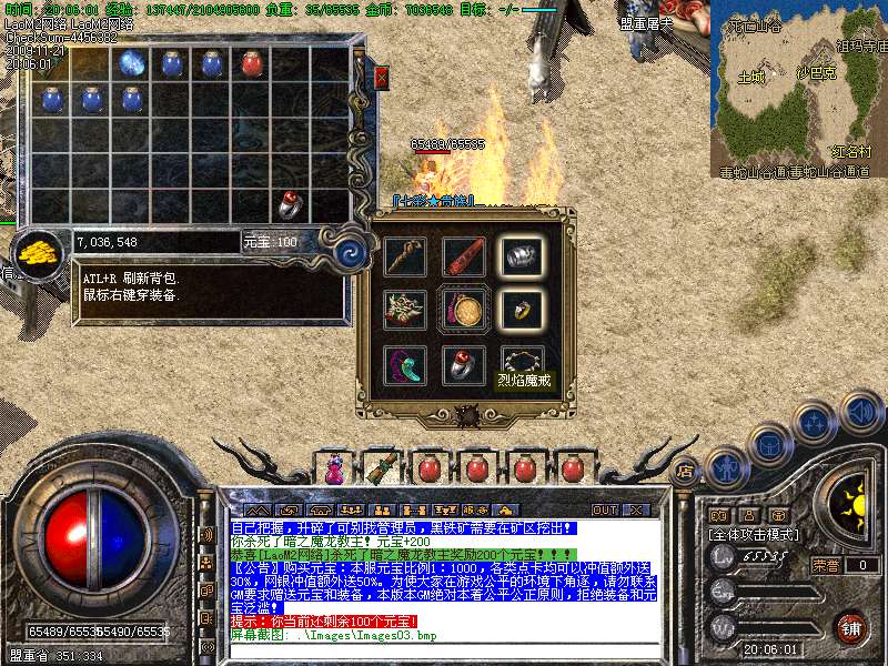 9.系统每111分钟分全服提示随机刷出一棵摇钱树,必暴出大量元宝 10.本服已添加祖玛头像爆率,爆率5/1,每月8日,18日,28日举行集体行会攻沙,届时获胜行会将获得分别为10万,20万,5万+传送戒指 (或防御,火焰戒指,可选),其余时间自行攻沙均不给予奖励,谢谢合作!