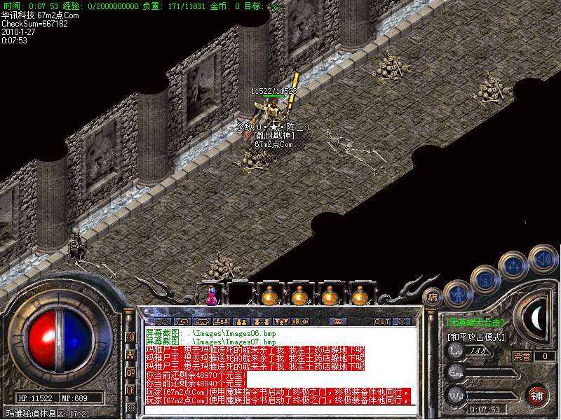 15.全国唯一的复古版本,唯一不用元宝就可以进入玛雅地图的游戏!真正的公平游戏``在盟重土城药店处会出现石墓尸王,只要您消灭掉就可以直接送您到玛雅神殿.出怪时间为90分中``就是说90分中才可以免费进入一次``