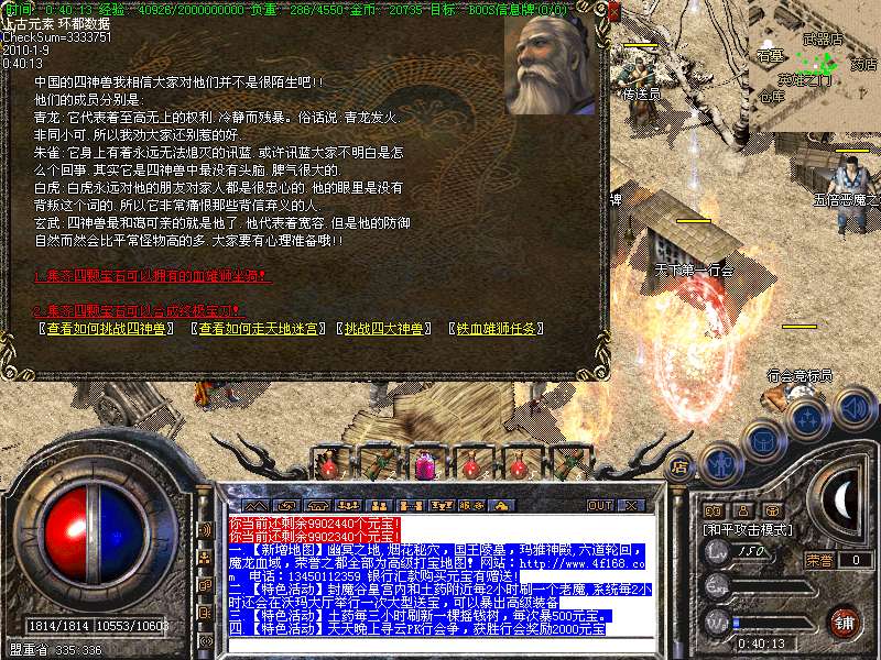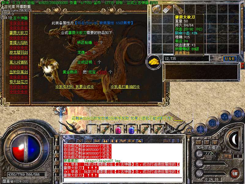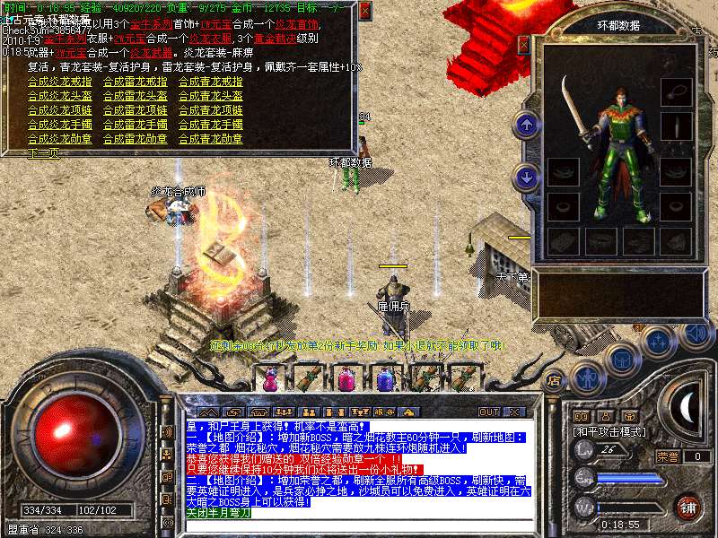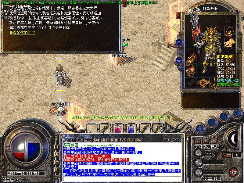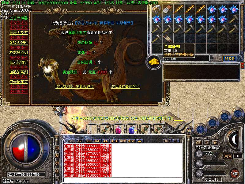 9:增加啊炎龙合成师,可以利用多余的装备+元宝合成炎龙级装备。