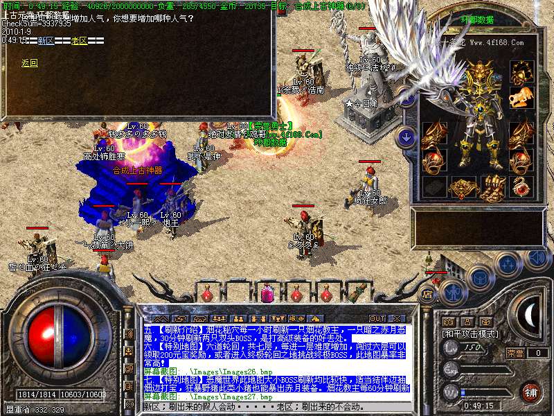 5;增加上古神器系统,可视化合成,新颖耐玩,合成6件新武器,眩目的外观,超然的属性。通过NPC打造合成出来(请看游戏截图有介绍)。