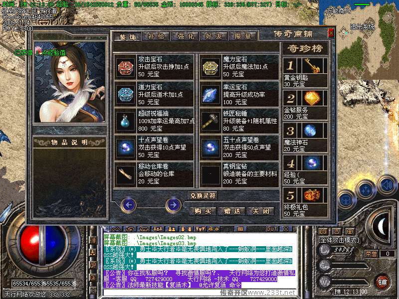 1.85内挂2009年11月最新版本,本服在1.85的基础上添加了新地图【幽灵船-蚂蚁洞-安其拉】等新地图金牛装备元素灵魂系统!