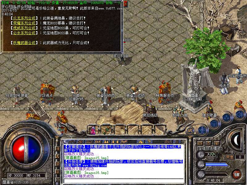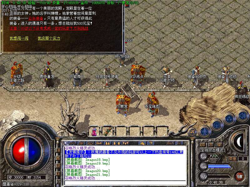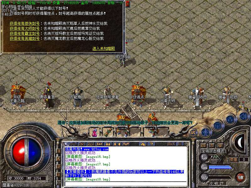 【游戏帮助】:游戏内每次合区将删除60级以下小号,请大家将做仓库用的小号升到60级以上!避免损失!道士40级后召唤神兽可召唤出白虎,70级以后可召出千年虎王!
