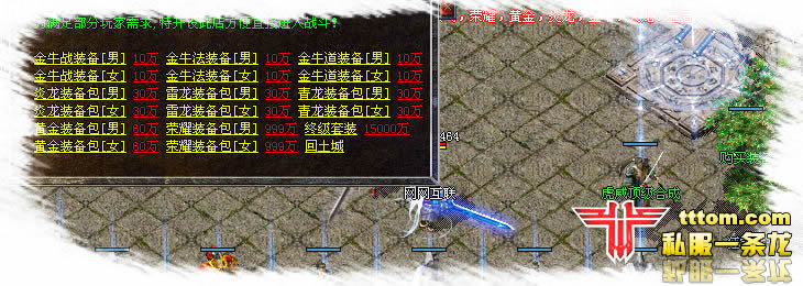 游戏介绍②: 本F的等级最高为130级,增加内功技能全部免费送-[到了等级送].终极装备是倚天荣耀装备可在本F终极地图(荣耀之地和荣耀之城)直接暴出或者用封神装备合成,里面的怪物为人型怪,穿什么就暴什么,无比凶猛!建议组队前往!荣耀套装备带有暗藏属性!特别是倚天武器,想知道什么样可以带上试试