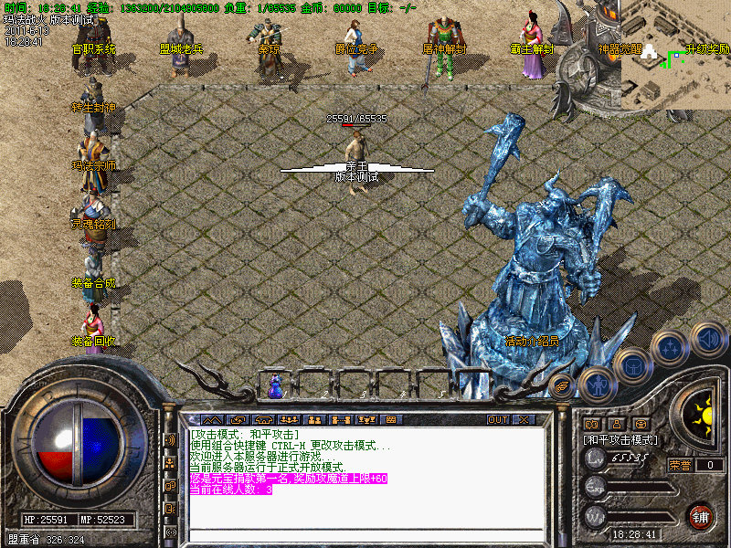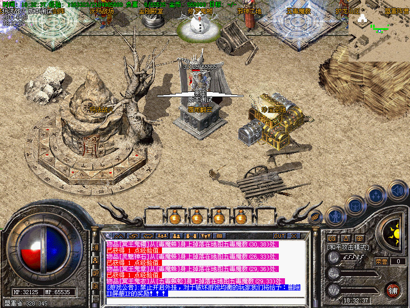 2.新手可进入盟重阵营地图内有经验泡点加成,获得初级装备,裂痕,血魂,冥王迅速成长!