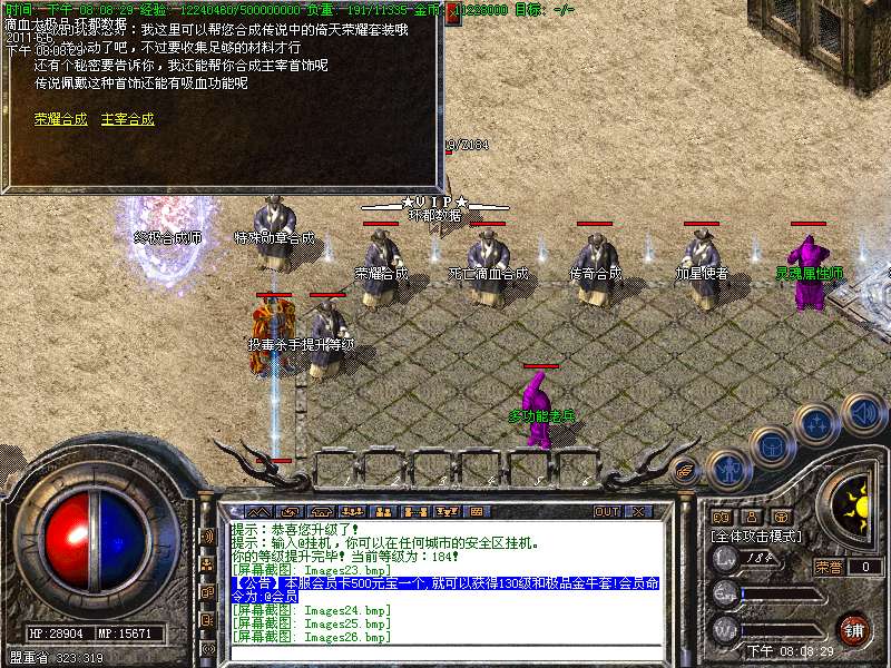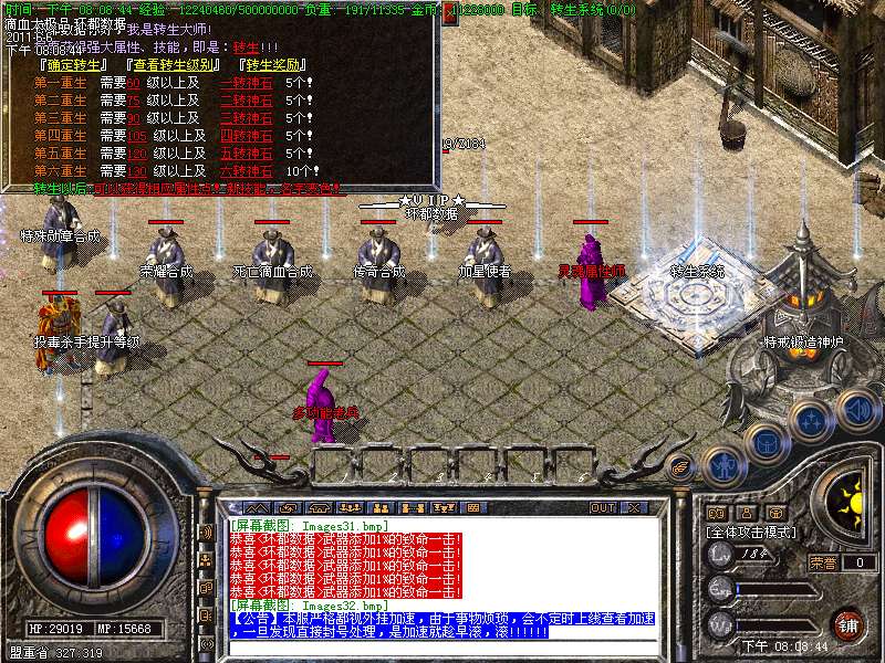 【激情PK 】本服特别添加激情PK堂,死亡人物掉一级。是PK比武的好去处。