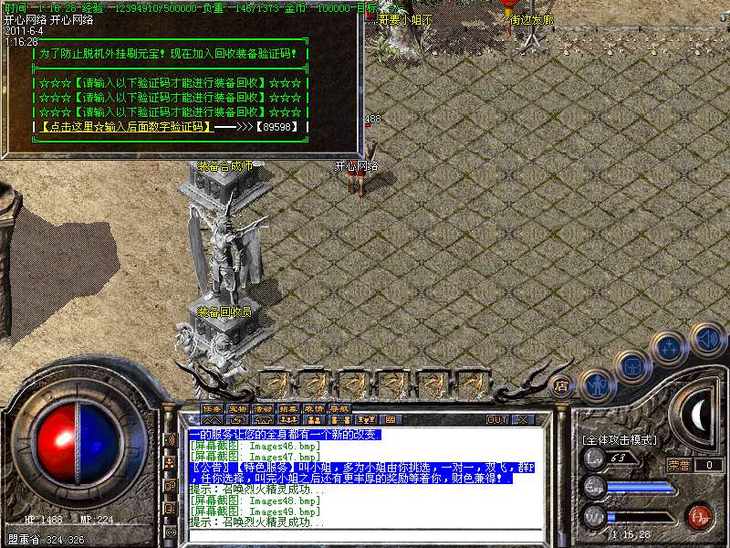 【装备回收】转生装备每个阶段的装备都能在土城NPC那里回收!换的声望-经验-元宝!所以请大家不要乱扔装备.