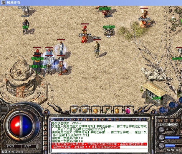 此端取自与城城任务单机传奇1.27!不过M2用的是非连击的假人版!本人觉得一个人玩挺孤单的!所以花了不少时间添加了大量假人!几乎所有地图都有假人!大家做任务的同时!可以PK什么的!嘿嘿!!注意了!有一种类型的假人装备很好!会主动杀人哦!大家玩的时候要小心哦!!喜欢的顶我啊!!不废话了!直接上图!!本人制作的四职业传奇!以后把大地图和怪物添加好了!但是还没添加物品- -!制作中.......