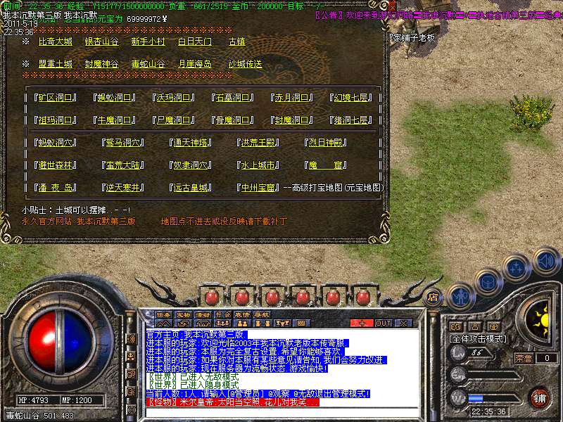 【特色1】:游戏网站:我本沉默执迷古镇第三版!游戏命令:@加入门派 @退出行会 @允许夫妻传唤 @夫妻传唤 @move @服务!如果你看不见地图装备,请下载补丁解压覆盖盛大传奇目录就可以看见了!
