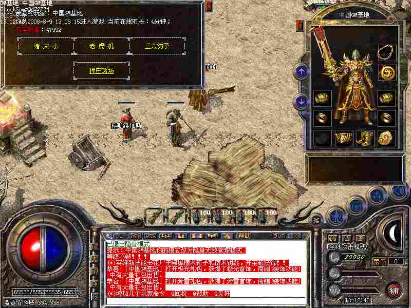 ·练级攻略:本服务器1-50级很快就可以到达,50-60级您可以去天关,挖火龙珠,挂石头!!·游戏窍门:盛大骨灰玩家知道幸运9的威力…可以去焰火屠魔打幸运2的项链,武器很容易喝到+7 !即使没有装备 威力一样超强