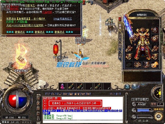 三.【特色活动】每天一次的活动.斩杀任意怪物500只可获得500元宝的奖励.元宝自动增加在身上.注意查收!