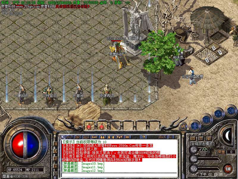 游戏介绍①: 新手地图练级2分钟到35级,30级以后系统自动送一套赤月装备回到土城.