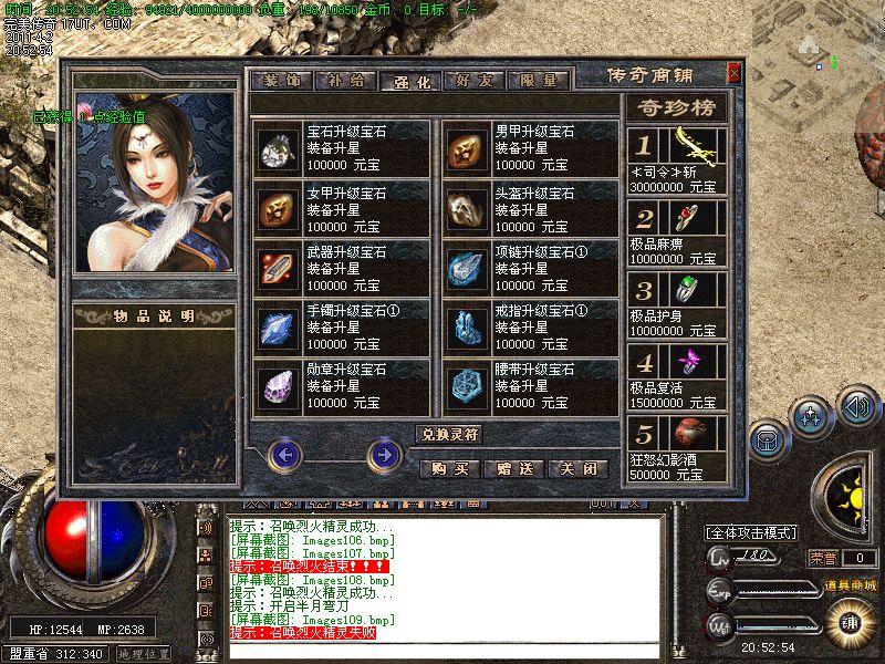 【装备回收】转生装备每个阶段的装备都能在土城NPC那里回收!换的声望-经验-元宝!所以请大家不要乱扔装备.