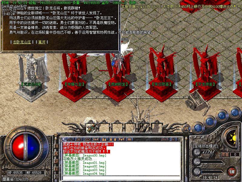 ---→增加卧龙山庄新地图:掉落物品+9套装备、火龙套装、天龙套装、帝王套装、鳯舞套装。