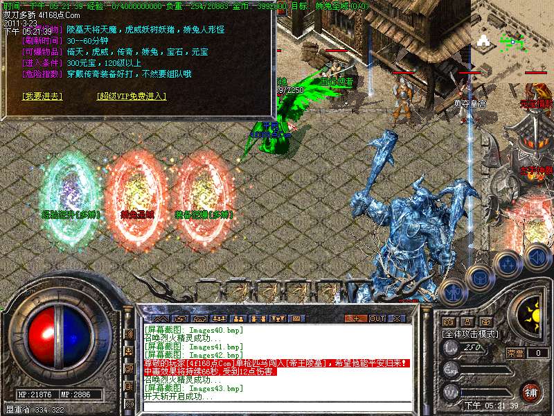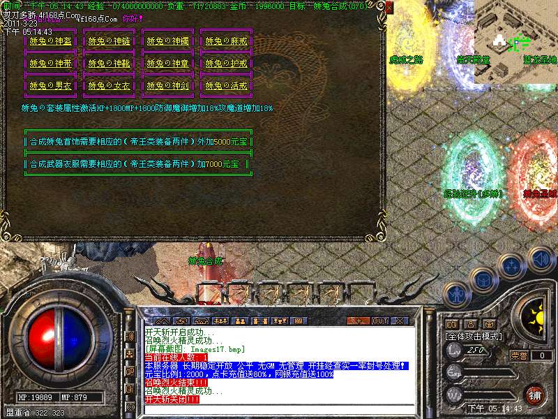 元宝获取:充值元宝送积分换取道具,也可以通过打怪和回收装备获得丰厚的元宝