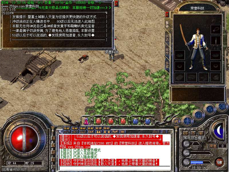 郑重申明,本游戏为暗夜,暴雪团队打造的全新版本,我们将延续去年的管理模式和开区模式。严格打击仿造本服的一切游戏!本版本在老版本的基础上加以全面升级、仿盛大基础上传承传统版本精华,吸收无数版本之精华经过2个月的公司内部内测、修改才打造出如今的传奇!下面介绍一下本服的各个技术要领。请各位喜欢高人气、真正千人在线的传奇服仔细查看!(本服为暗夜(暴雪)团队负责经营)