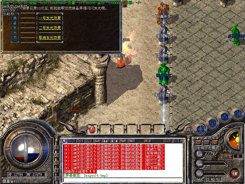 各个安全区自动喊话的NPC都是假的,系统喊话是红字和蓝字,所以请 玩家特别注意不要上当.本服唯一客服无GM
