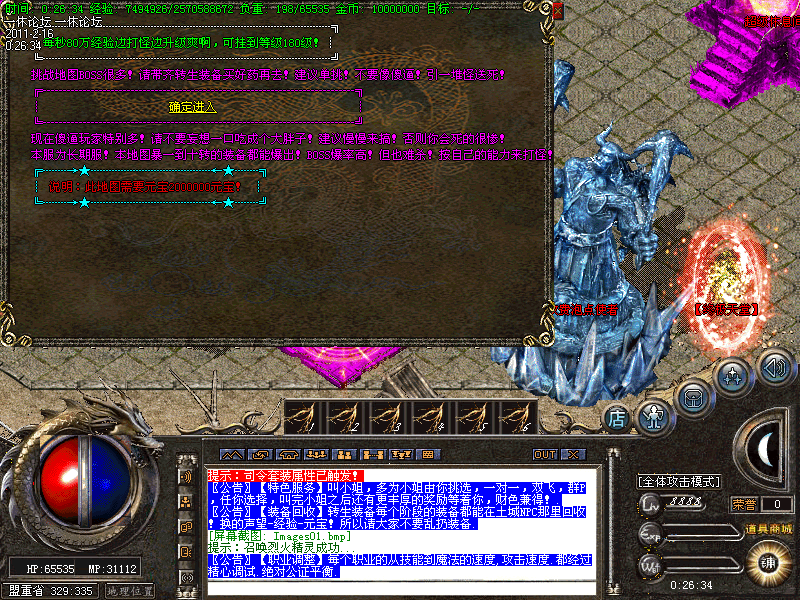 【新手上线】平衡了三职业!人物上线就送新技能和大量财富包括元宝!升级无需打怪!泡点直接到顶级!.