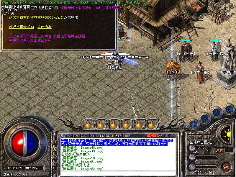3.新区开放3天拿沙 奖励为88888元宝 在土城安全区NPC领取!