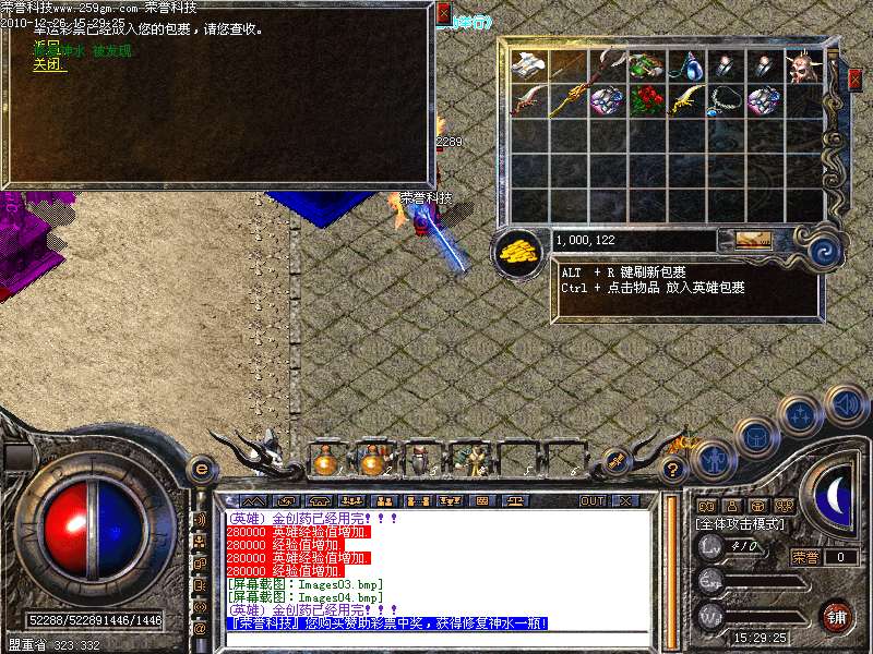 接下来开始游戏赚元宝生涯,祖玛会爆很多祖玛,赤月装备。回收在综合使者地方可以回收装备获得元宝技能书可以用书页在土城左上角的技能合成师地方合成,终极装备各大地图教主都有爆,最近的可以在免费驿站里的“蛋疼教主”也会爆出。9套、屠龙、荣誉之刃不在是梦想,本服升级慢。