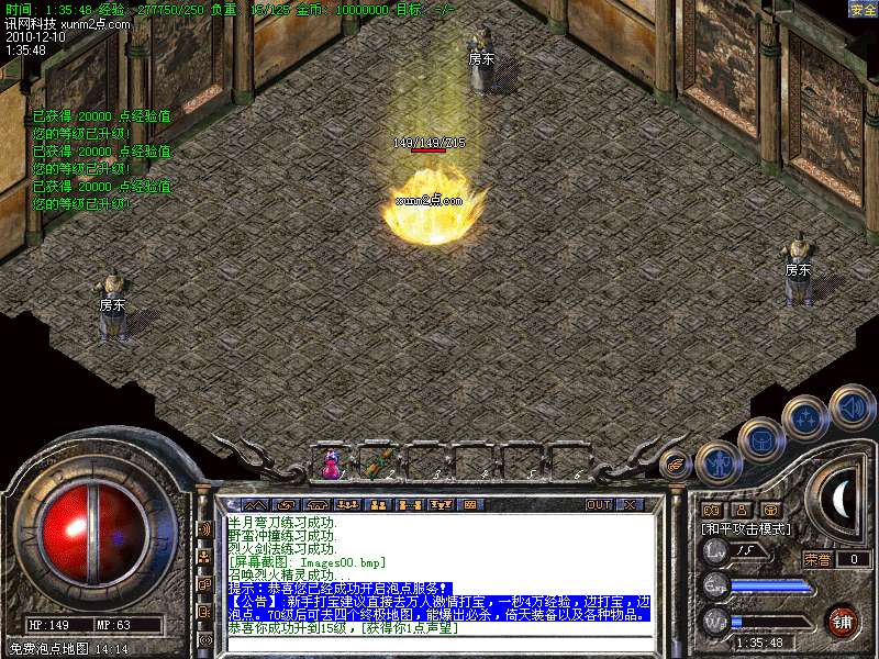 【公告】:新手打宝建议直接去万人激情打宝,一秒4万经验,边打宝,边泡点。70级后可去四个终极地图,能爆出必杀,倚天装备以及各种物品。