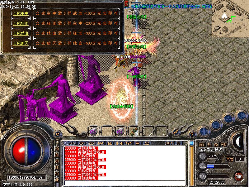 统领攻城:每天下午5点,各城市安全区刷一毁灭统领机率爆终极装备