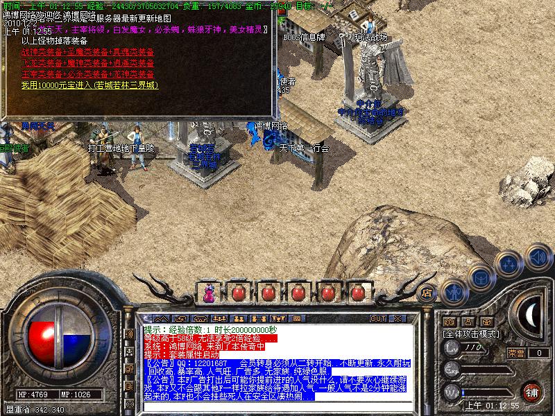 服务器暗之轮回教主,每天刷新四次,暴开天类武器机率非常的高喔!!!