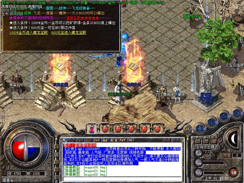 在原来的飞龙地图:六道轮回.王者天堂,荣誉殿堂,天空之城,藏龙宝殿,玫瑰庄园.埃及.地下皇陵.的基础上.增加几个特色新地图.三界城.终结之谷.七彩幻城.免费送宝