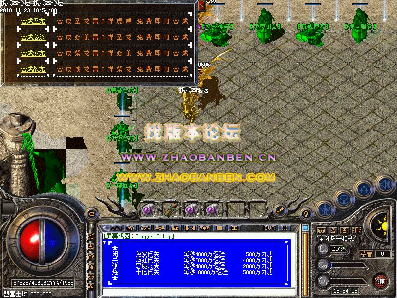 *╔─┬───────────────────────────╗│★│ ││闭│ 免费闭关 每秒4000万经验 500万内功 ││关│ 疯狂闭关 每秒6000万经验 4000万内功 ││修│ 恶魔岛★ 每秒4000万经验 2000万内功 ││炼│ 十倍闭关 每秒10000万经验 5000万内功 ││★│ │╚─┴───────────────────────────╝