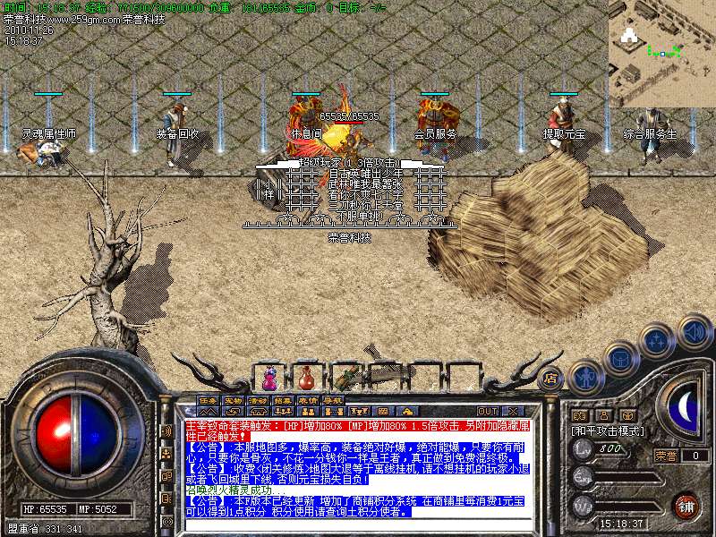 2、新人上线送幸运+9武器,无须打怪,直接进入泡点休息间,瞬间65级,避免打出装备带不上的尴尬