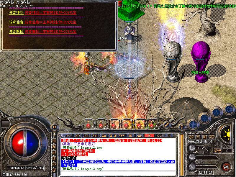 【特色功能】:【上古龙神】行会PK室(23.24)上古龙神90分钟会出现。爆装备元宝。。