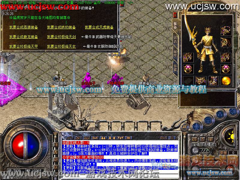 【更新】更新转生系统,1-12转,转生后每转都可以获得相应属性点,另外还设置转生奖励,4-12转可以分别领取各种技能书及超级装备,防麻痹盾牌,1。5倍力量面纱等!!具体土城转生炉处了解!