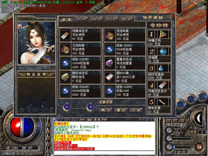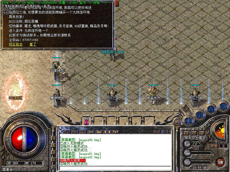 6.高级打宝地图:神泣、天堂、激情、烟花、后宫、玛雅5层、挑战终极、魔神绝地、恶魔广场、精炼之地等等,更多游戏功能,请玩家自行探索!!!