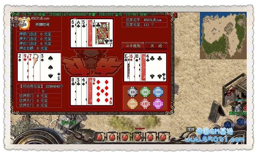 【娱乐系统】:设有二种娱乐博彩系统,1:高仿真带音效雪豹水果机,让你能重新体味到游戏机室的快感.2:适用于全服玩家参与的牌九游戏,庄家坐庄后,其他玩家可在顺门,天门,反门,三处任意下注,每门二张牌,与庄家比点数大小,简单,但能让你感受真正的刺激。兼备运气与智慧以及资产实力!玩家与玩家之间的较量,系统不收取任何费用或税务!