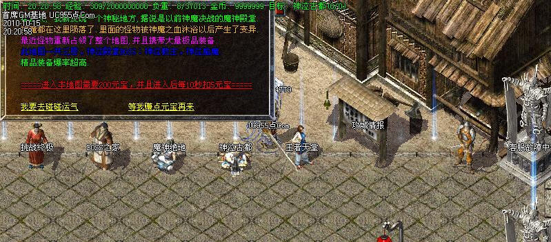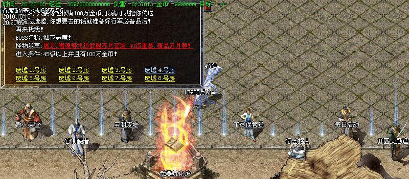 特别地图:王者天堂为打宝天堂,每天16点开放.此地图任何大小怪物都可以有机率暴出赤月类装备和精品首饰、终极武器!