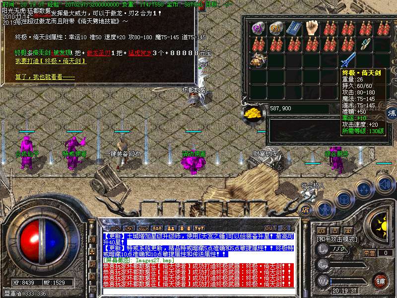 【更新】土城增加星级升级师,使用[天宫之锤]可以给装备升星!最高可升40星!