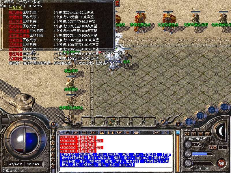 〖版本介绍五〗:增加风云天下套装,系补丁套装!装备全面提升属性!具有复活麻痹作用!武器衣服