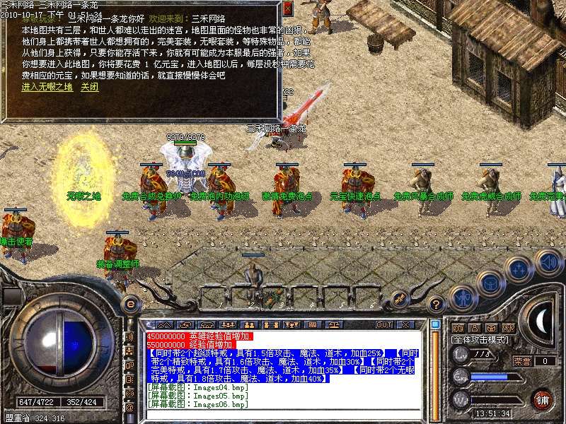 〖版本介绍三〗:新增【顶级狂爆城】【地下王国】【龙帝之墓】【完美之城】【无暇之地】【处 男悲泣之地】【处女泪雨之地】【天意之地】此新增地图绝对可爆全服所有装备 装备,包括特殊戒指和物品,此新增地图全部分为两层,第二层的爆率可比第一层 高的多哦!
