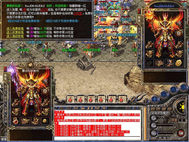 【特色功能】:【上古龙神】行会PK室(23.24)上古龙神90分钟会出现。爆装备元宝。。