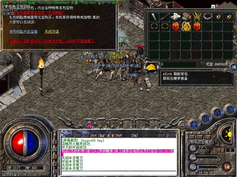 新人上线送幸运+9武器,无须打怪,直接进入泡点休息间,瞬间65级,避免打出装备带不上的尴尬
