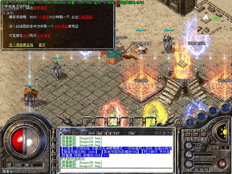 60级后可以去激情打宝,每秒4W经验,边打宝边泡级,可爆修真、无敌、必杀,BOSS出大量元宝。