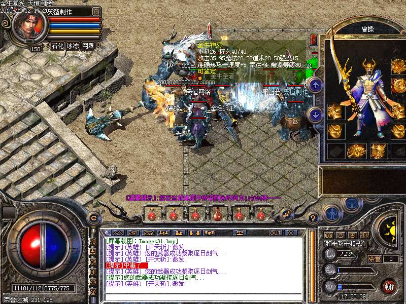 1.版本和盛大同步去掉内功和连击,将1.95和1.85综合而成的无盾,无内功,无连击.所有装备靠打和合成,就金牛神刃和金牛衣服不爆其他全部装备都爆出,只要肯努力就有终级!