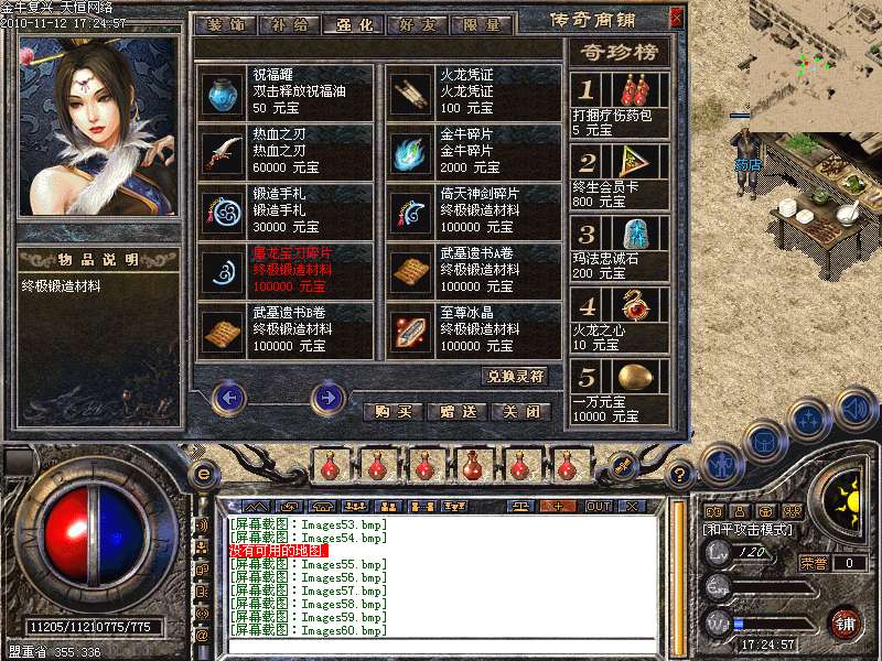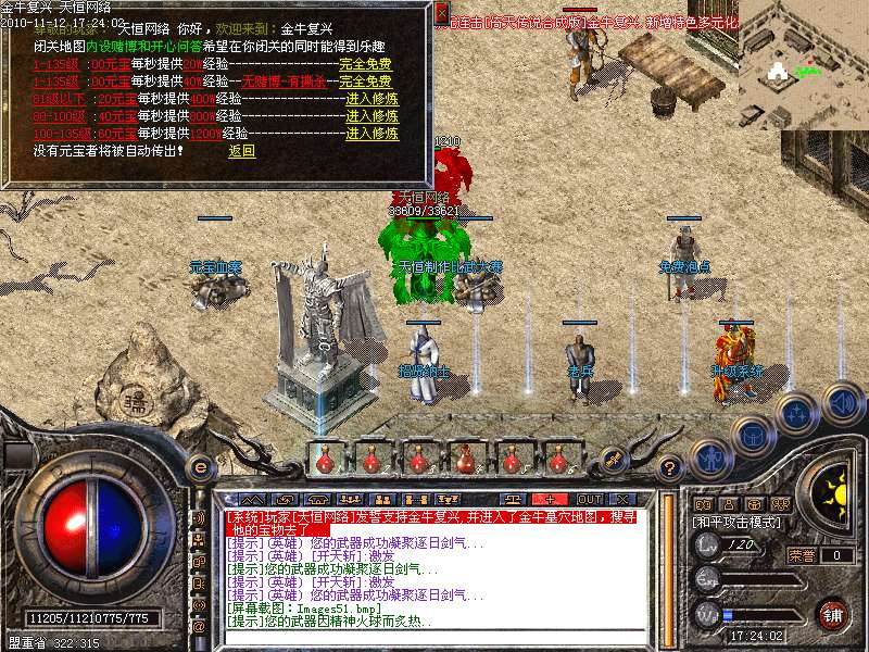 4.神话新加十转轮回系统,美丽的七彩封号增添更多的游戏乐趣!装备调整师(胖子老板)让您的装备得到想要的升级!综合服务师功能强大,服务多多!