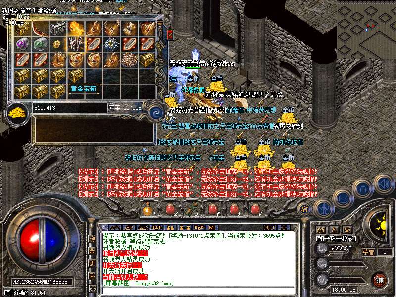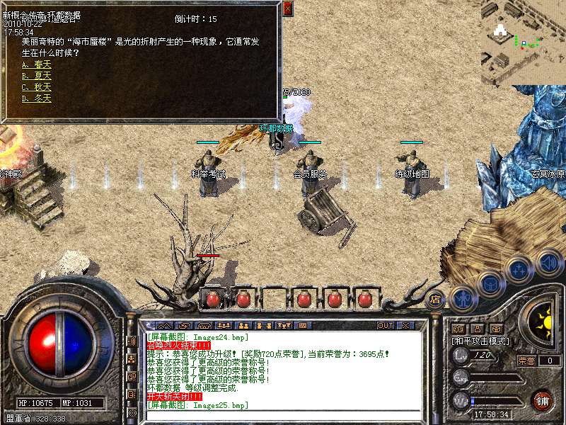 【攻城奖励】新区第一任沙城主获得10000元宝!!攻下城堡之后在皇宫找攻沙奖励NPC领取。第一届沙老大在攻城结束后可以到皇宫里自己领取奖励,只可以领取一次,切记是在10点以后,15分钟内领取奖励。