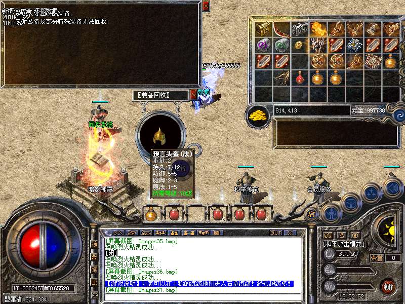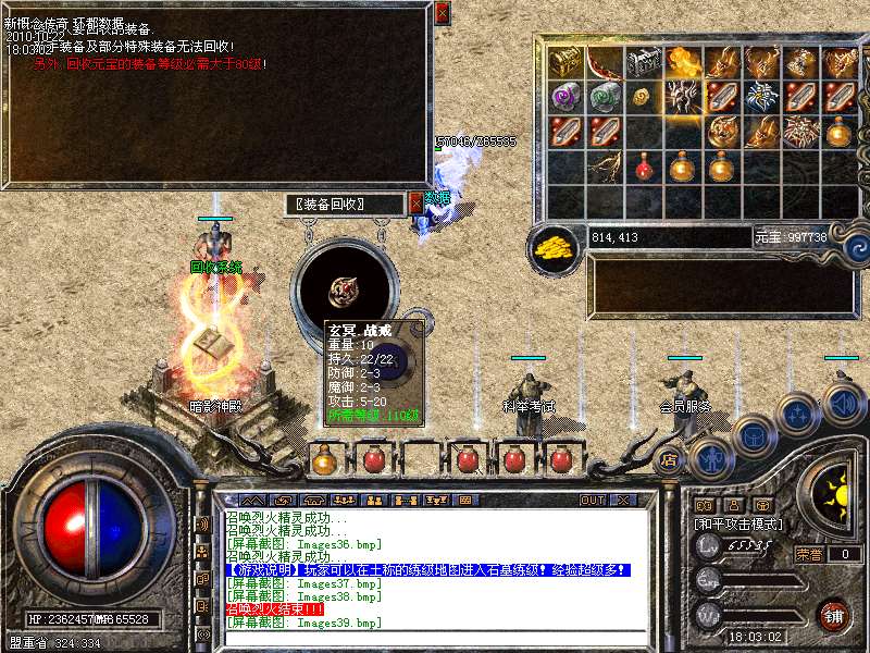 【回收系统】每一件装备都来之不易,对于辛苦获得的装备,却不适合自己,我们采用了独家设计的完美回收系统,除个别特殊装备外,所有装备,都可以交由系统回收,并获得丰厚的经验奖励。回收的装备等级越高,奖励的经验就越多。通过装备回收,能更快更轻松升级!