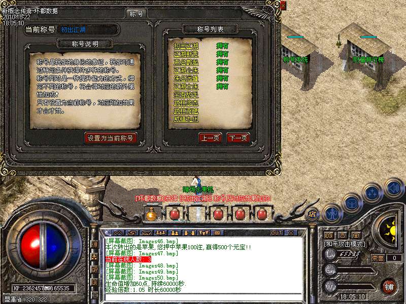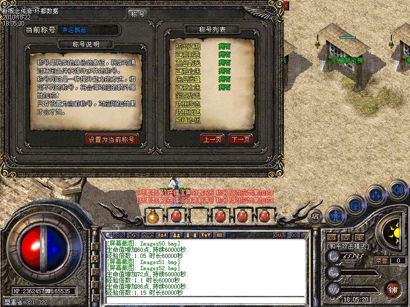 【称号系统】:你的成就,你的名号,都在封号系统中完美体现!包括荣誉称号,还有各类排名前十的称号。所有称号都有称号效果加成,每一个称号,都是实力,魅力的象征!