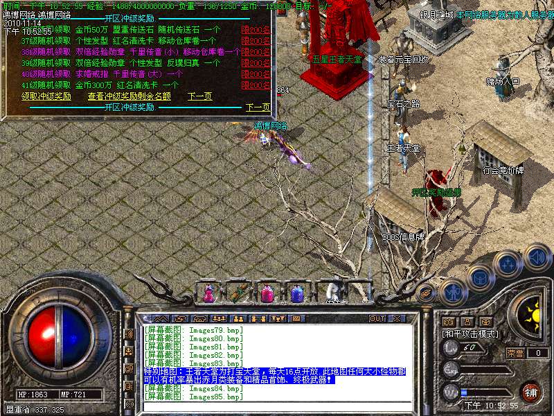 特别地图:王者天堂为打宝天堂,每天16点开放.此地图任何大小怪物都可以有机率暴出赤月类装备和精品首饰、终极武器!